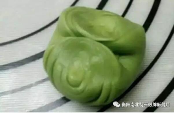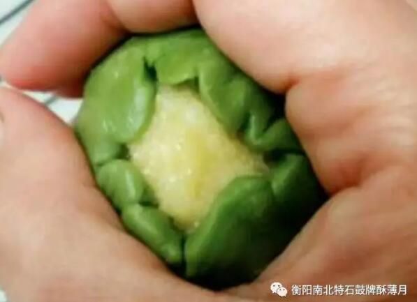 4.取一個(gè)油皮,包一個(gè)油酥,將口捏緊